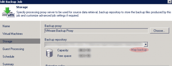 Now open up the properties of your existing job, go to your Storage section, and adjust your backup repository to the new one you just created.