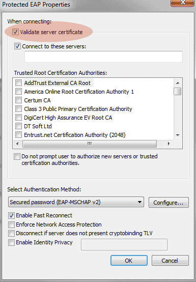 Additionally, the client did not want to validate the server certificate. Machines that were validating correctly had the ‘Validate server certificate’ option unchecked. However, the problem machine had the box checked. Even after unchecking and reapplying settings, the box would recheck itself.