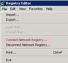 Once regedit has opened, I need to try to connect to registry of the remote machine. To do this, click on File and select Connect Network Registry.