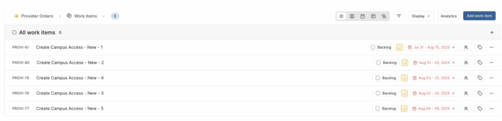 - Onboarding Coordination: For each accepted student, admissions manually raises a ticket in a separate project management tool so IT can set them up, requiring repeated data entry and checks.