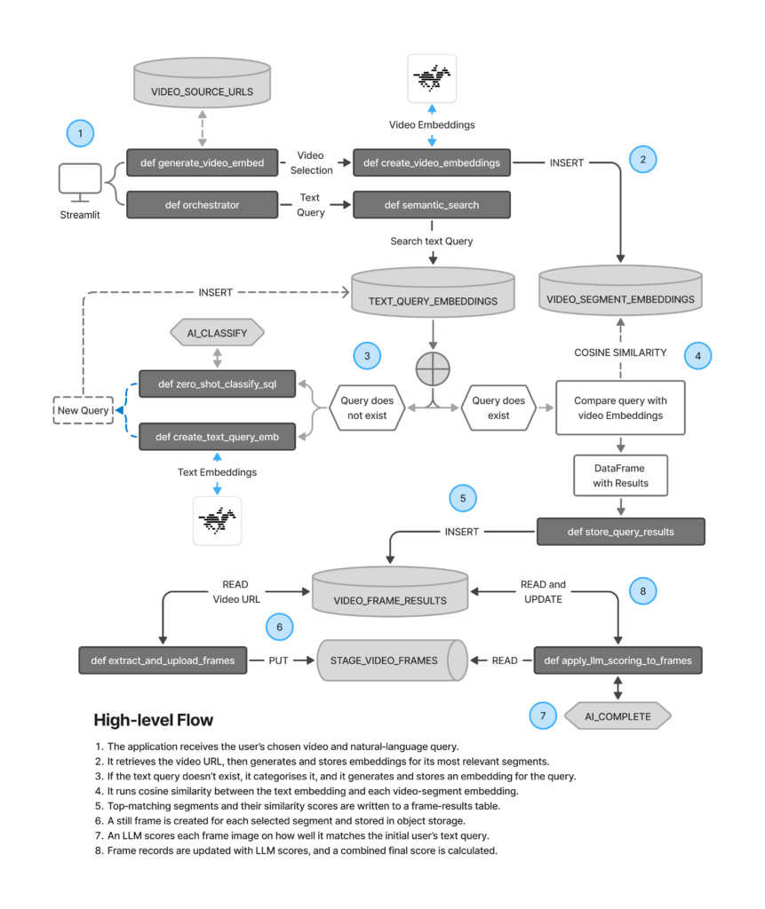 This covers the bulk of the setup needed. Again, you can see the full code used in this GitHub repository, including a basic Streamlit app that will act as the front end. We are now ready to start processing natural‑language queries against the video.