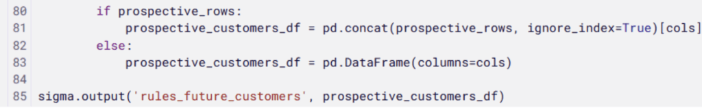 Above: From the series “One Simple Way to Break your Python Code in Sigma.” Remember to keep your sigma.output() calls at the top level of the script. It should never be nested inside a conditional statement, loop, or any other block.