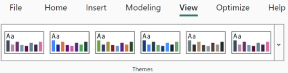 I love creating custom colour palettes in Tableau. They can be a great time saver. The best alternative in Power BI is to use themes. Themes control more than just the colours in a report — they set fonts, text sizes and gridlines/table formatting. The view tab gives you access to preset themes. These can be altered by customising the theme, or you can upload your own themes using a JSON file. Go try it out and see if there’s one that can work for you right out of the box.