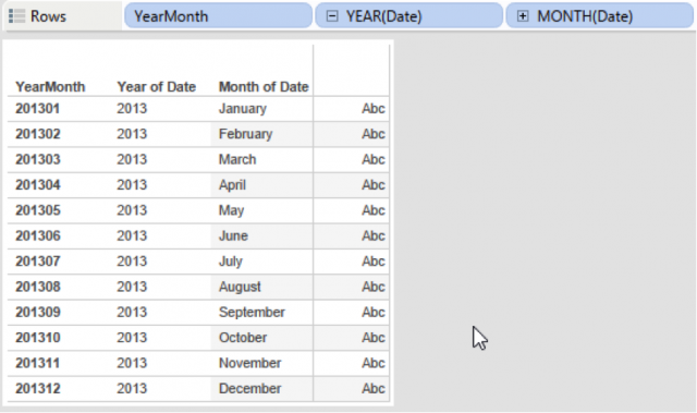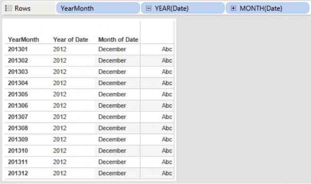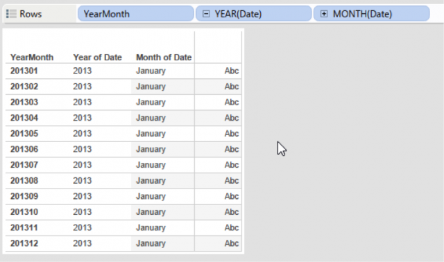 Wait, that’s not correct! Using “yyyymm” in the formula yields the correct year but you only get January—we’re missing the rest of the data! If we switch the case of “yyyymm” to all caps and try “YYYYMM”: