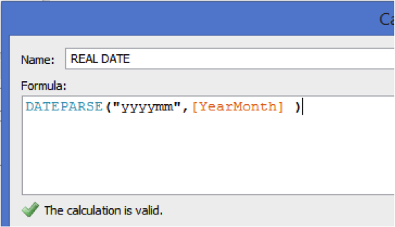 First, let me point out that DATEPARSE is not automatically in the list of functions in Tableau. You will see the option if you are connected to MySQL, Oracle, PostgreSQL or a Tableau Data Extract. However, If you are connected to a datasource and do not see the function listed (i.e. Excel or a text file), then you will need to simply extract your data. Once you have your connection set, it’s time to jump into the dating pool!