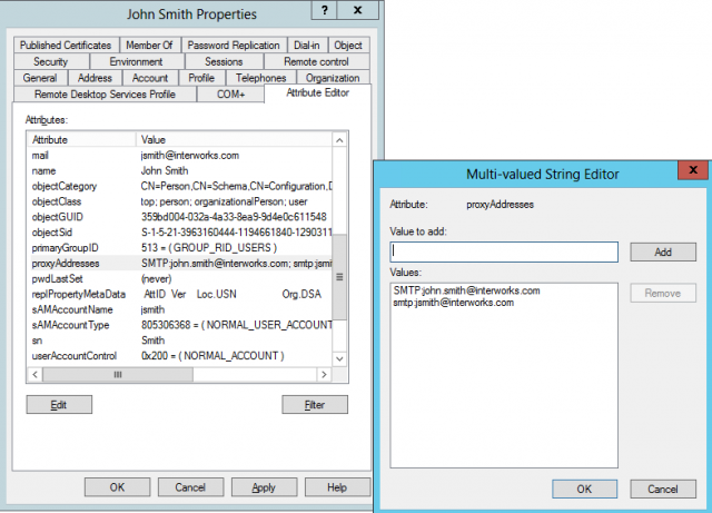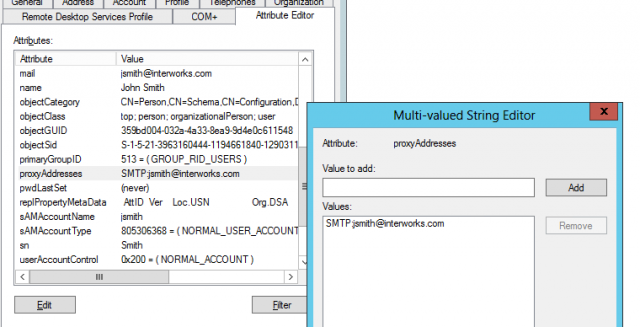 There are several solutions to this, but the easiest and most ready-to-go is to modify the attribute “proxyAddresses” within Active Directory Users & Computers. Follow these simple steps: