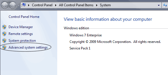 Note: Alternatively you can go to Control Panel > System - Click on Advanced System Settings