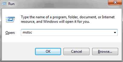Type in mstsc (Note: there are several other commands that can be included to have your remote desktop connection apply certain default settings.)