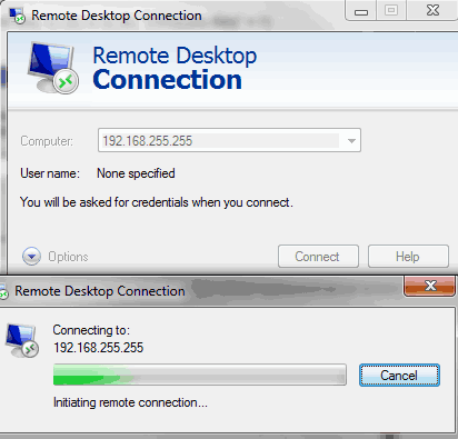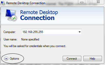 Enter the IP address or the name of the machine. In my example, the is IP 192.168.255.255 and the computer name is computer1. If you are using the computer name to remote on to a machine, you must be on the same network like a VPN or be on the same internal network or you must have previously set up in a host file or have DNS configured correctly. If you are connected through VPN, it is highly recommended that you use the computer name since your IP is most likely set dynamically.