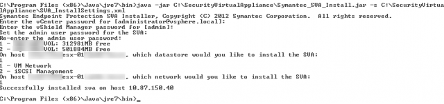 Java –jar Symantec_SVA_Install.jar –s FullpathSVA_InstallSettings.xml
