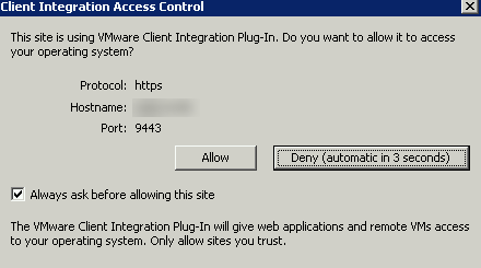 If this is the first time running the VMware Client Integration Plug-In, the following window will appear. Click Allow.