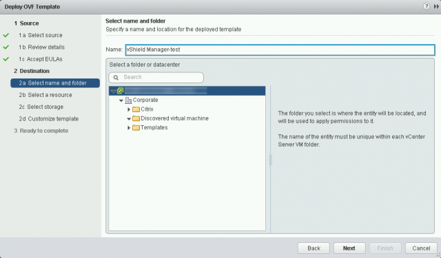 On the next screen, you will be prompted to select a VMware folder and to name the virtual machine.