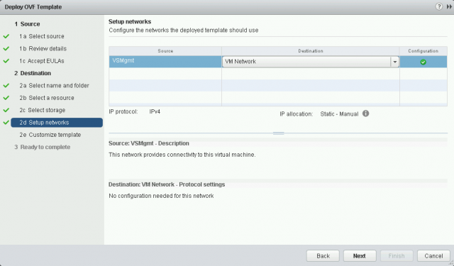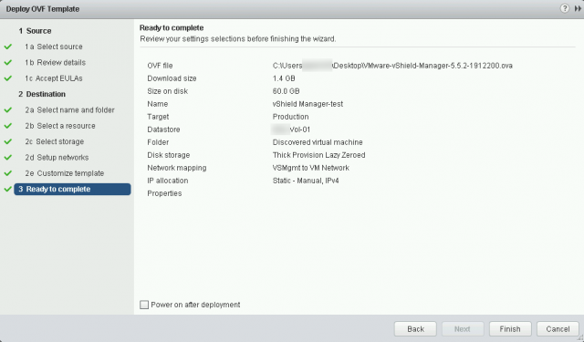 The Deploy OVF Template window will summarize all options selected for deployment. Click Finish to begin the deployment of the virtual appliance.